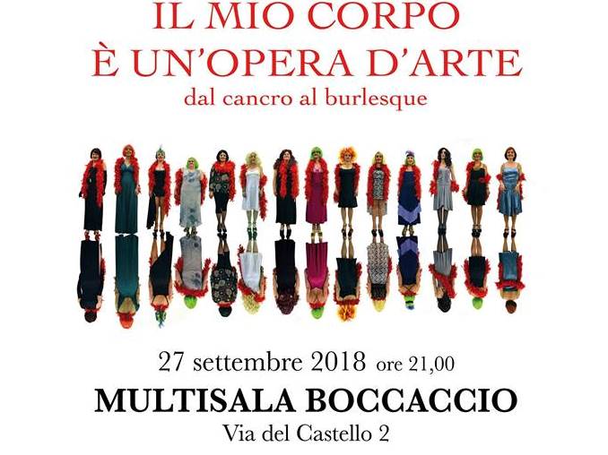 "Il mio corpo è un'opera d'arte - dal cancro al burlesque" alle ore 21.00 lo spettacolo teatrale presso Multisala Boccaccio in via del Castello 2 a cura di Arbus regia Francesca Sanità.