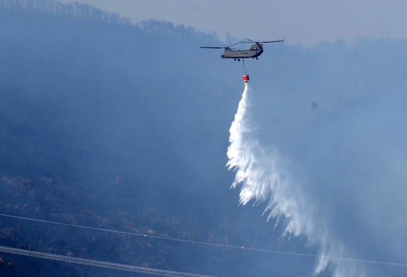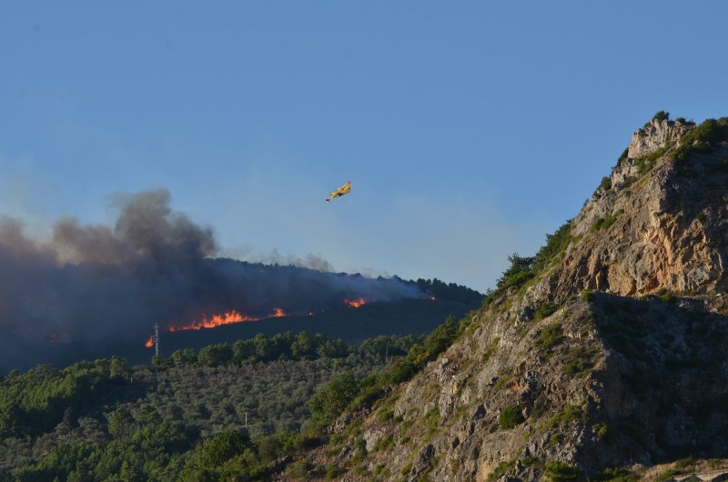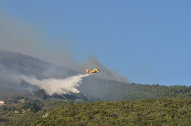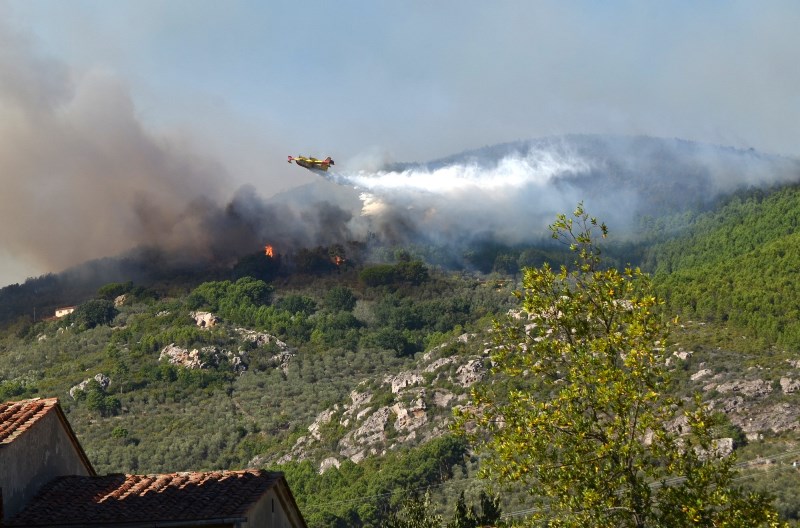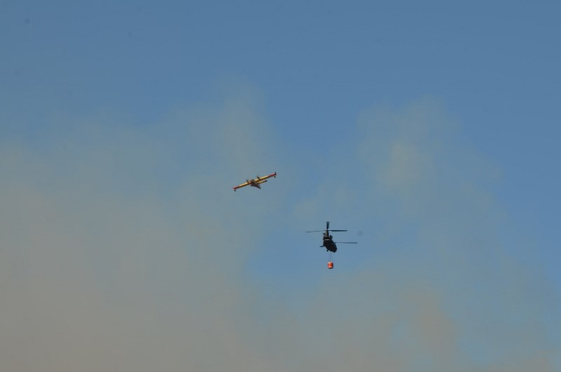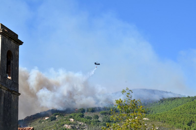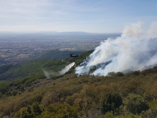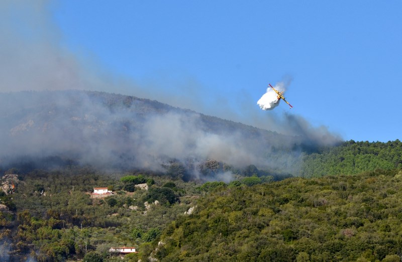 "I cinque canadair e i due elicotteri della Protezione civile nazionale e i cinque elicotteri della flotta aerea regionale sono operativi dalle 7 di stamattina in tutta l'area interessata, ma non riescono ancora a spegnere le fiamme".