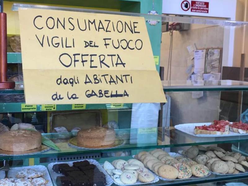 Nel frattempo, l'immagine che sta diventando il simbolo del lavoro di squadra tra i volontari, vigili del fuoco e residenti dell'area colpita dalle fiamme è quella che vedete in copertina. Nella frazione di Calci de La Gabella un bar ha avuto come gesto di riconoscenza quello di offrire la colazione liberamente a tutti i vigili del fuoco presenti. I pompieri non chiedono niente in cambio per il loro operato in quanto organi dello stato, ma nel loro piccolo i calcesani hanno compiuto un gesto dall'altissimo valore simbolico: un grazie infinito da concedere con un momento di pausa dal duro lavoro.