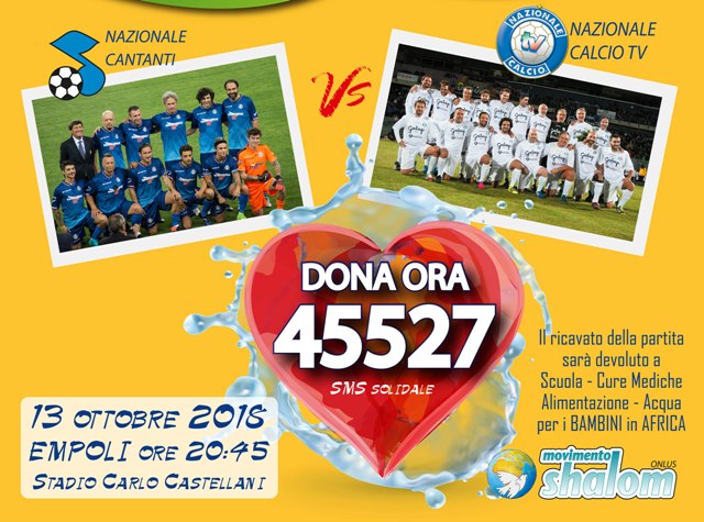 Continua la promozione di “Metti in campo il cuore”, la partita di solidarietà tra Nazionale Italiana Cantanti e Nazionale Calcio TV del 13 ottobre ore 20.45 al Castellani di Empoli per raccogliere fondi per i progetti del Movimento Shalom.