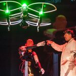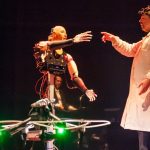 Il libretto della “Robot opera” è stato quindi pensato anche per Face e per narrare la vicenda di uno scienziato, il Dr. Streben che, lentamente, finisce per innamorarsi della creatura che ricorda la sua amata e scomparsa Galatea. Ma consapevole del fatto che Face (Umy nella “robot Opera”) non potrà diventare una donna, decide di trasformarsi lui stesso in un Cyborg, grazie a Mexos, una sorta di esoscheletro collegato al computer. La “fusione” avrà effetto e il drone, immobile sul palco dall’inizio, inquadrerà la mano di Umy e quella dello scienziato che si uniscono, proprio come avviene nel “Giudizio universale” di Michelangelo.