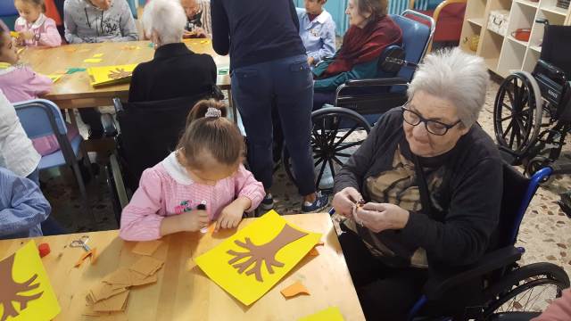 Poi tutti insieme, nonni e “nipotini”, hanno partecipato ad un laboratorio creativo sull’autunno e ricevuto in dono i piccoli lavori fatti come ricordo di una mattinata speciale, offrendo a loro volta dei bellissimi disegni che gli anziani hanno accolto con gioia.