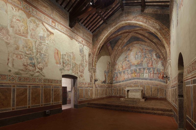 Intorno al 1413 l’intero edificio fu interessato da una straordinaria decorazione a fresco eseguita dal pittore fiorentino Cenni di Francesco di ser Cenni. Il tema del ciclo è quello della vita ultraterrena che si lega alla figura del santo titolare, Lorenzo, cui è concesso salvare le anime del Purgatorio.