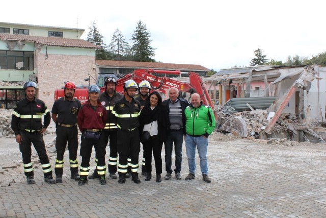 Il 2 ottobre è cominciata la demolizione della scuola primaria e dell’infanzia “E. De Amicis” di Muccia, resa inagibile dal rovinoso sciame sismico 2016. Grazie al progetto della Fondazione Andrea Bocelli le macerie lasceranno spazio alla costruzione di una nuova struttura, funzionale e sicura. Il corpo dei Vigili del Fuoco, dopo aver terminato l’abbattimento, consegnerà il cantiere alla Fondazione. “Sono attività che rientrano nell’ambito del nostro intervento nel cratere – ha affermato il Comandante di Ancona Pierpaolo Patrizietti – l’emozione e la soddisfazione più grandi sono quelle di lavorare rispettando i tempi e soprattutto la parola data.” La giornata di martedì è iniziata con una lenta processione di cittadini, commossi nel vedere le operazioni di demolizione. Alle 8.30, insieme al primo cittadino Mario Baroni, sono arrivati anche gli alunni delle scuole elementari: insieme agli insegnanti i bimbi hanno seguito l’inizio delle operazioni, facendo domande ai Vigili del Fuoco e all’Ingegnere progettista e direttore dei lavori.
