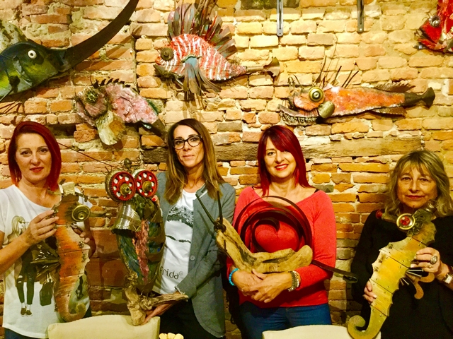Tre attività commerciali di Cascina (Pasta & Vino, il Carato e Casa Nannipieri Arte) si uniscono per creare qualcosa di unico tra arte, cibo e gioielli per arredare, nel centro storico di Cascina. In sinergia con Slow Food Valdera, le sculture realizzate da Sandra Ugolini e Arianna Celleno del Carato (Corso Matteotti 119) che rappresentano pesci, gufi, chiocciole, creati originalmente con materiali di riuso, sono esposti dal 6 ottobre presso Pasta & Vino (via Elio Vagelli, 22), l’osteria riconosciuta da Slow Food tra le migliori d’Italia, fino al 6 novembre, con la supervisione di Casa Nannipieri Arte e con l’organizzazione di Patrizia Ennas. Come quarto appuntamento, ideato per unire l’arte al cibo, lo chef Virgilio Casentini e Lucia Landi realizzano un piatto dedicato appositamente al tema delle sculture utilizzando un preciso presidio Slow Food. Per la serata del 6 ottobre, ore 20, sono previsti, oltre al saluto dell’assessore al commercio Sonia Avolio, gli interventi di Anna Morabito, fiduciaria di Slow Food Valdera, la curatrice di Casa Nannipieri Arte Patrizia Ennas, le artiste Ugolini e Celleno e, infine, lo chef Casentini che presenta anche le novità prodotte dal suo pastificio (via della Pace 14) che utilizza solo materie prime di origine italiana.