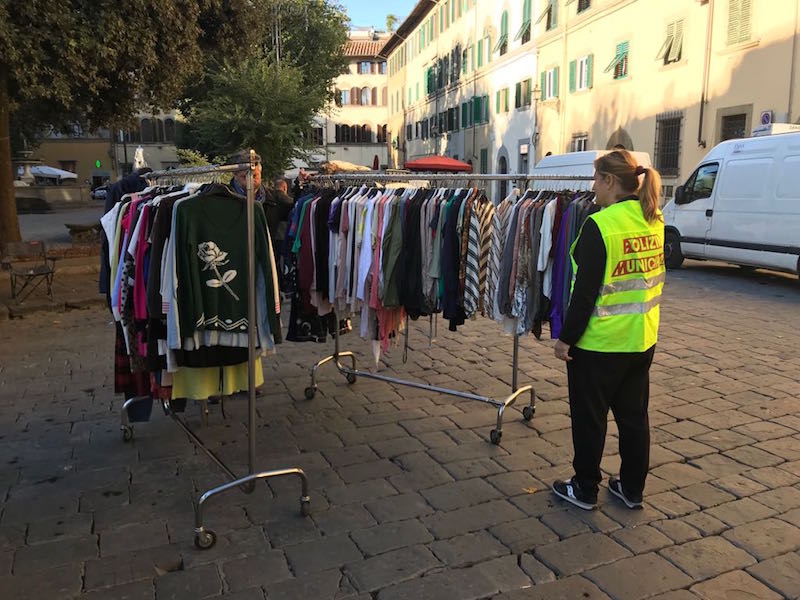 Aveva allestito un banco al mercato di Santo Spirito accanto agli ambulanti regolari pur non avendo l'autorizzazione. E noncurante delle regole, vendeva tranquillamente capi d'abbigliamento ma è stato pizzicato dalla Polizia Municipale. L’episodio risale a questa mattina. Gli agenti degli agenti del Reparto Amministrativo hanno effettuato alcuni controlli al mercato. Giunti al banco dell’uomo, un 54enne croato, hanno scoperto che era abusivo: il gestore infatti era privo di qualsiasi autorizzazione alla vendita. Per il venditore è scattato un verbale da 5.000 euro in base alla Legge Regionale sul Commercio e il sequestro di 226 capi di abbigliamento.
