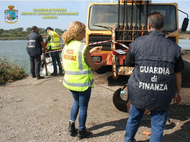 I militari della Guardia di Finanza e il personale della Polizia Provinciale di Livorno hanno notato pozze oleose ed evidenti tracce di trafilamento di oli esausti verso il canale scolmatore. Dopo verifiche, l'inquinamento è risultato derivare dall’impianto di alta pressione di un’autogru utilizzata per l’alaggio ed il varo delle imbarcazioni da parte di un cantiere livornese; inoltre il veicolo era stato installato in modo permanente senza le previste autorizzazioni demaniali.