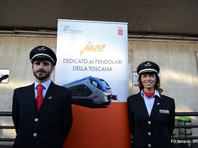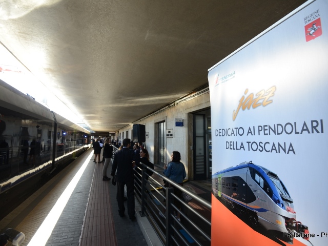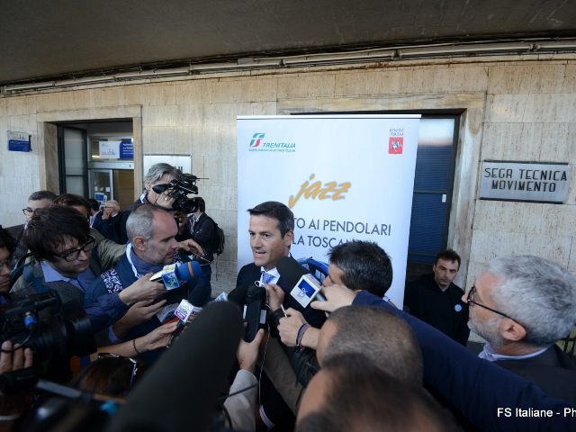 Presentato oggi alla stazione di Santa Maria Novella il 16° treno Jazz della flotta regionale toscana. Entro il 2018 sarà completata la fornitura di 20 dei nuovi convogli, sulla base di quanto previsto dal contratto di servizio che lega la Regione Toscana e Trenitalia.