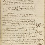 Il Codice Leicester è un’opera fitta di annotazioni geniali e di disegni che Leonardo vergò in gran parte tra il 1504 e il 1508: una stagione davvero magica della storia di Firenze, con la presenza contemporanea in città di grandissimi personaggi delle lettere, delle arti e delle scienze, che Benvenuto Cellini la battezzò, genialmente, “La Scuola del Mondo”. Per Leonardo, furono anni di intensa attività artistica e scientifica. In quel periodo effettuava infatti studi di anatomia nell’Ospedale di Santa Maria Nuova, cercava di mettere l’uomo in condizione di volare, era impegnato nell’impresa, poi non condotta a termine, della pittura murale raffigurante la Battaglia di Anghiari a Palazzo