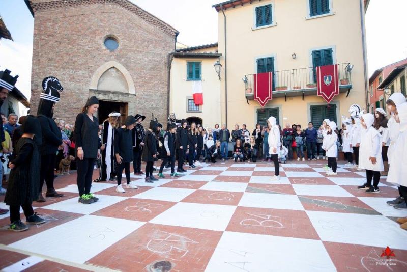 Nel pomeriggio, dalle ore 15.00, una sequenza ininterrotta di eventi animeranno le vie del borgo con giochi medioevali (foto ricordo in costume, giochi di legno e di stoffa, lezioni di pesca), la via degli “antichi mestieri” allestita da Contrad’Arte (via della Repubblica), la possibilità di provare una gita in carrozza fino alla Pieve di Coiano. A seguire, sempre nel centro storico, “Vizi divini e carnali virtù”, spettacolo teatrale itinerante in cui i visitatori, come gli antichi pellegrini, saranno coinvolti in una serie di peripezie tra truffatori, imbonitori, cartomanti e personaggi bizzarri. Per chi non si sarà sentito sufficientemente sazio alla mensa del pellegrino alle 16.30 ci sarà anche “l’angolo del buongustaio”, con dolci tipici di Castelnuovo, accompagnato dalla sfilata in costume e dalla finalissima degli “Scacchi viventi”.