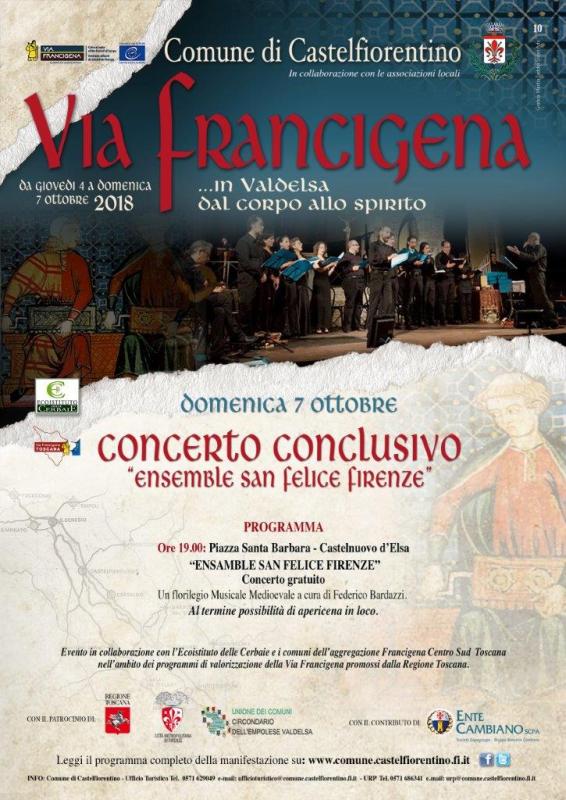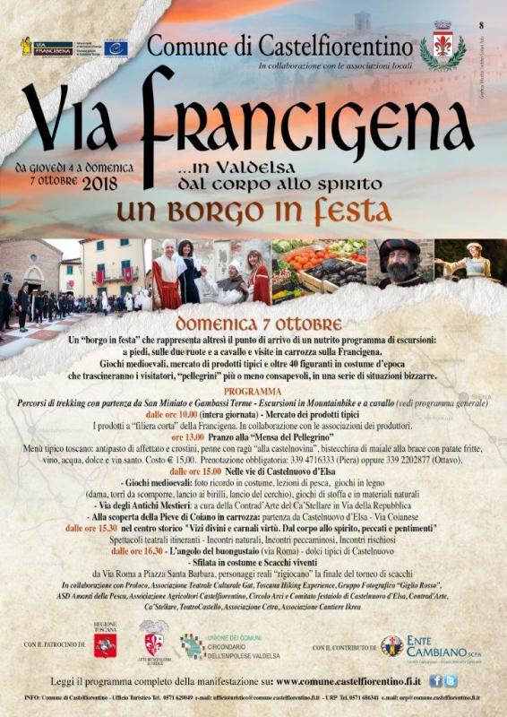 “La via Francigena in Valdelsa” è inserita nel programma del Festival europeo “Vie Francigene, Cammini, Ways, Chemins - Collective Project” 2018”, promosso dall’Associazione Europea delle Vie Francigene.