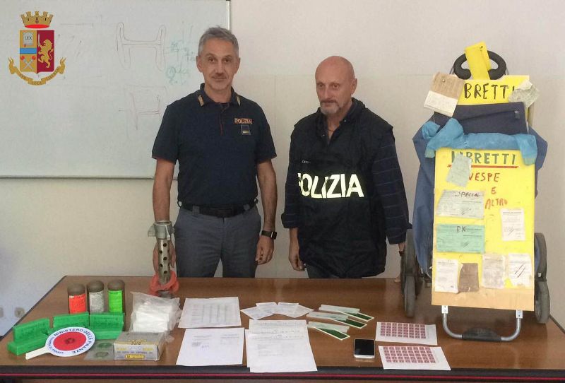 Ma quel timbro di Prato gli è stato fatale, tant’è che gli investigatori del Compartimento Toscana, insieme ai loro colleghi della Sezione di Macerata, si sono recati a casa del malfattore per perquisirlo, su delega della Procura di Firenze. L’attività ha consentito il recupero di numerose marche da bollo false da 100 lire, vari libretti di circolazione in bianco o già compilati, più normografi, una paletta delle forze dell’ordine, fumogeni, cartucce, nonché il carrellino pubblicitario. Tutto è stato sequestrato e la Polstrada sta cercando i complici.