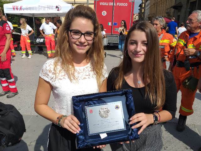 Le studentesse-artiste, insieme al loro docente, prof. Ferdinando Cerri, hanno partecipato alla cerimonia di premiazione che ha visto coinvolti autorità, cittadini ed operatori, volontari e non, impegnati nella Protezione Civile, in una piazza dove erano esposti mezzi e attrezzature utilizzate durante le emergenze. Hanno partecipato alla giornata molte autorità, tra cui: Raffaele Latrofa, assessore del Comune di Pisa con delega alla Protezione Civile, Roberta Monni, per la Prefettura di Pisa, Riccardo Gaddi, Dirigente Protezione Civile Regionale, Agostino Miozzo, Direttore Generale del Dipartimento di Protezione Civile della Presidenza del Consiglio dei Ministri e Michele Conti, Sindaco di Pisa.