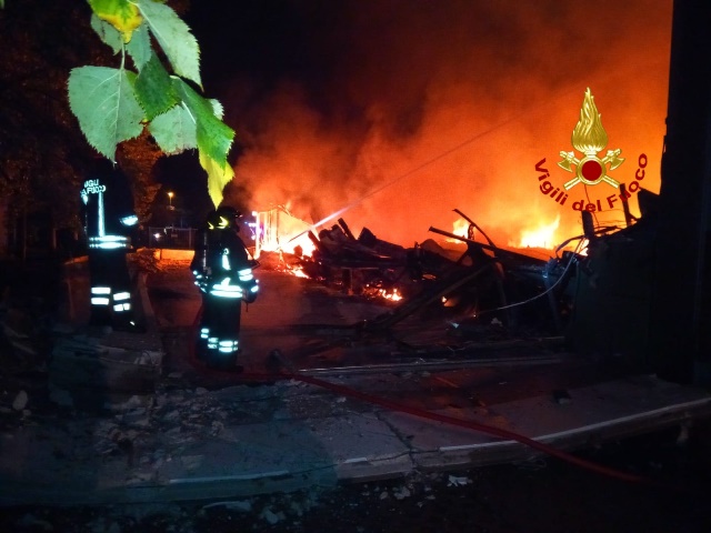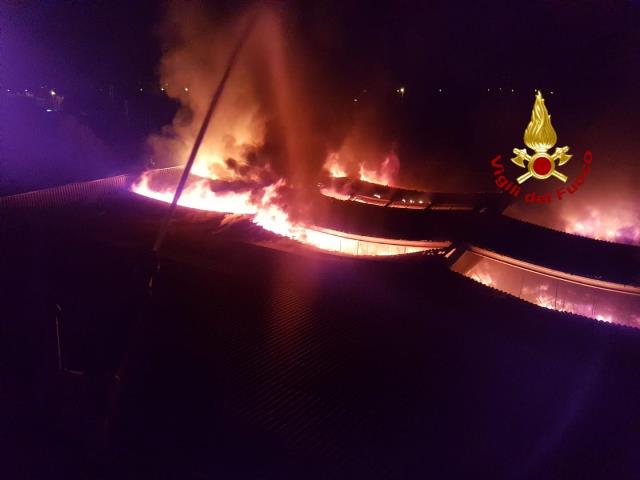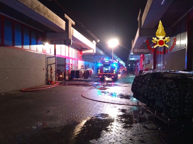 Due cinesi sono stati portati in ospedale per accertamenti per una sospetta intossicazione da inalazione di fumi, perché si trovavano nelle vicinanze del fuoco. Le condizioni di salute dei due non destano preoccupazioni. In fiamme è andata l'area magazzino, circa 1.500 metri quadri, di un complesso industriale più esteso, la ditta 'Fashion 6 Srl' di proprietà di cittadini orientali. Il fuoco ha causato il crollo della prima campata dell'edificio. Due squadre di pompieri sono ancora impegnate in queste ore nelle operazioni di bonifica e 'smassamento' dei resti dell'incendio. Non si conoscono le cause che hanno scatenato l'incendio. Si cerca di capire se ci fossero macchinari accesi, da cui potrebbero essere partite le fiamme.