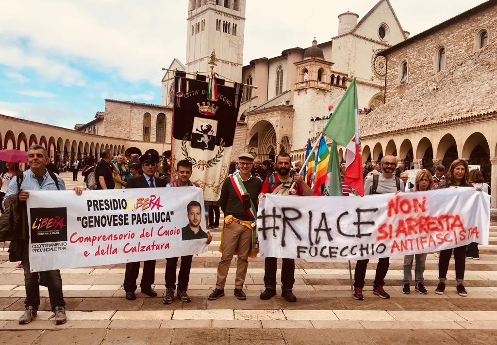 Il Comune di Fucecchio era presente col proprio Gonfalone, col sindaco Alessio Spinelli e con l’assessore alla cooperazione internazionale Antonella Gorgerino insieme a tante associazioni che hanno contribuito ad organizzare il viaggio in Umbria: la Fondazione I Care, l’associazione Hurria, il Movimento Shalom, la Banca del Tempo, l’associazione Popoli Uniti. Presenti anche l’ANPI, lo Spi-CGIL, l’Agesci-Scout e altre associazioni del territorio.