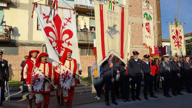 È stato schierato un Reparto di formazione, composto dalla Fanfara, da una Compagnia in Grande Uniforme Speciale di Allievi della Scuola Marescialli e Brigadieri, da una rappresentanza di Comandanti di Stazione, dai Gonfaloni della Città di Firenze, decorato di Medaglia d’Oro al Valor Militare, della Regione Toscana, della Città Metropolitana di Firenze e del Comune di Castelfiorentino.