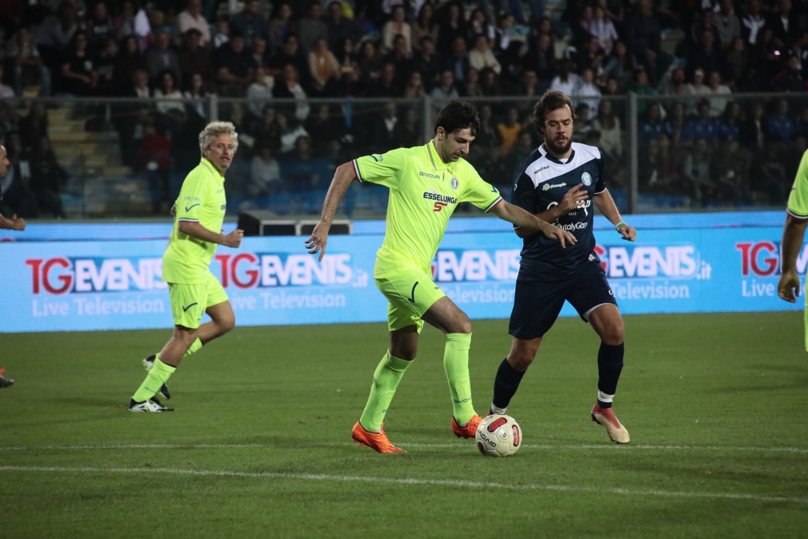 Tra una canzone e una trasmissione tv, in campo è andata la solidarietà al 'Carlo Castellani' di Empoli: Metti in Campo il Cuore ha raccolto tanti spettatori come per un match contro le più blasonate squadre di Serie A. Si contano circa 10mila paganti per l'evento di solidarietà Shalom per una perforatrice per sorgenti d'acqua da donare al Burkina Faso. Il colpo d'occhio per la Maratona è impressionante e fa piacere vedere questo attaccamento a una manifestazione relativamente giovane (nasce nel 2016). A fine serata viene annunciato il ricavato, di 51.800 euro, con il maxi assegno consegnato nelle mani del Movimento Shalom. Tra i giocatori questa sera in casacca gialla (Nazionale Italiana Cantanti) e blu (Nazionale Calcio Tv) c'erano Paolo Bonolis, i cantanti Moreno, Niccolò Fabi, Ermal Meta, Neri Marcorè, Biondo, Paolo Vallesi e i personaggi tv Moreno Morello, Jimmy Ghione, Marco Baz Bazzoni e molti altri. In porta due ex giocatori di Serie A, Sebastian Frey per Calcio-Tv e Ivan Pelizzoli per i Cantanti (che ha lasciato il posto ad Andrea Maestrelli, cantautore autore dell'inno dell'Empoli Fc). Il risultato per una volta non è fondamentale: 3-2 per i cantanti, con la doppietta della punta di diamante Moreno, 'formica atomica' come Giovinco e migliore in campo, rigore di Ficarra sempre per i Cantanti e doppietta su rigore segnata da Paolo Bonolis, capitano blu. Proprio il noto presentatore tv ha ringraziato la città per ospitare ancora una volta il memorial Ciao Pà, per ricordare del padre Silvio. Il fondatore del Movimento Shalom don Andrea Cristiani e il sindaco Brenda Barnini hanno ricordato il numero solidale 45527 per donare da rete fissa o mobile. Prossimamente verrà reso noto il ricavato. La partita sarà trasmessa questa sera su Italia 1 alle 23.15.