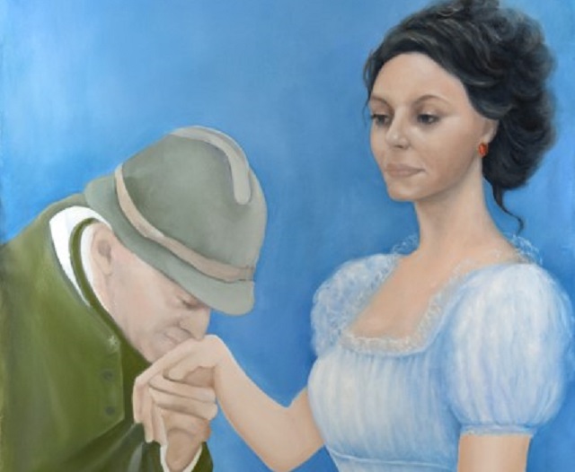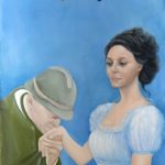mazzo di fiori a una giovane donna, forse la sua amata. Sembra che il fante porti su di sé la memorie delle decine e decine di figure di soldati che in Montesano abbiamo imparato a conoscere nel corso degli anni, mentre la giovane altera, stretta nell’abitino bianco, si porta dietro l’altro fondamentale retaggio di questo pittore eclettico, il ricordo reale della propria vita, l’ombra della donna che fu sua zia e lo condusse, forse per prima, al mondo della recitazione, del teatro, del cinema muto e del cinema, Isa Pola.