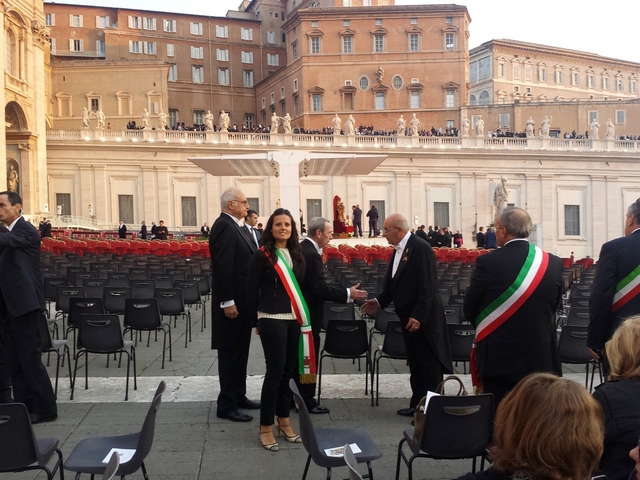 La delegazione ha poi fatto accesso alla Città del Vaticano, poi accomodati nella Piazza di S. Pietro avvolti nel secolare mistero di fede del colonnato del Bernini, nel Tempio massimo della cristianità universale. L'Assessore Giulia Pippucci, con il tricolore in rappresentanza di Montespertoli, è stata accreditata tra i tanti sindaci d'Italia giunti presso la sede dell'apostolo Pietro, nella fausta circostanza delle canonizzazioni concesse dal romano Pontefice. Commovente vedere riunita la Chiesa universale attorno al Papa, molteplici le delegazioni internazionali tra cui presente il Sig. Presidente della Repubblica e il Collegio Cardinalizio attorno al Papa, in onore ai nuovi santi elevati agli onori dell'Altare, in modo particolare la vicinanza a S. Papa Paolo VI, annunciatore del Vangelo, fino agli estremi confini, primo Pontefice che varcando la Città del Vaticano, si è fatto pellegrino nel mondo come S. Paolo, l'apostolo delle genti, di cui assunse il nome.