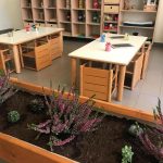 Ogni spazio è stato pensato con cura anche rispetto ai materiali da mettere a disposizione dei bambini e delle famiglie, gli albi illustrati e la natura con le sue forme e i suoi colori sono il filo conduttore all’allestimento del servizio.