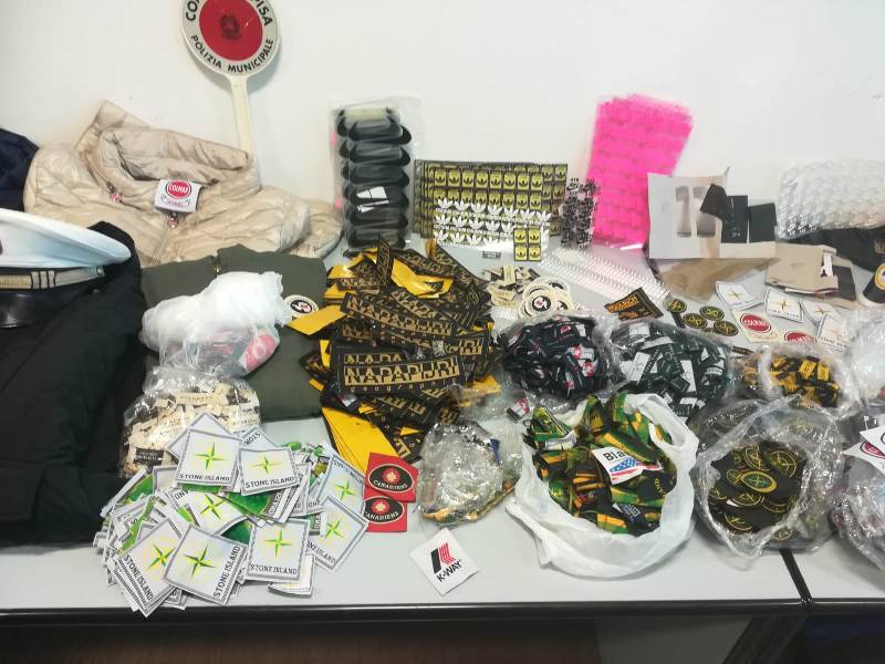 Durante la perquisizione sono stati rinvenuti e sequestrati materiali per la contraffazione di vestiti fra cui oltre 6700 etichette dei più famosi marchi (Colmar, Adidas, Fred Perry, Ralph Lauren, Napapijri), alcuni indumenti fra giacchetti, maglioni e scarpe di marca. Inoltre, sono stati sequestrati il tavolo da lavoro, la macchina da cucire e il resto dell’attrezzatura trovata.