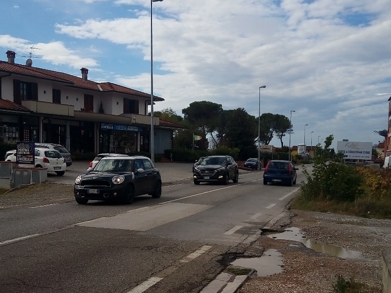 "Trecento metri di strada sulla Provinciale Francesca Sud dalla rotatoria dell'ulivo di Ponticelli andando verso Pontedera con circa 30 attività commerciali, una ogni 10 metri credo che sia la più alta densità di unità commerciali di tutto il territorio Comunale, ma purtroppo senza un solo metro di marciapiede per muoversi in sicurezza su una strada che è la più trafficata di tutte.