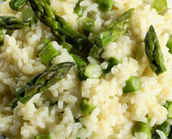Risotto in crema di cavolfiore con asparagi e mandorle