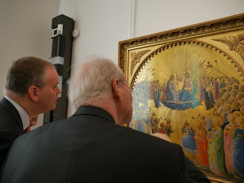 L’arcivescovo di Vienna, il cardinale Christoph Schönborn, è giunto, oggi, in visita agli Uffizi, accolto dal direttore, Eike Schmidt. Una sosta a Firenze per poter ammirare gli Uffizi, prima di recarsi a Roma, in Vaticano. Un tempismo fortuito, dato che proprio domani verrà presentato alla città il restauro delle fontane di Genimede e della Grotticella del Kaffeehaus, prima parte del progetto architettonico di recupero del Kaffeehaus, la caffetteria in puro stile viennese al centro di Boboli, il padiglione completato nel 1776 su disegno di Zanobi del Rosso: l’architetto del Granduca Pietro Leopoldo. Ieri, invece, Alberto Angela ha dedicato l’ultima puntata di Ulisse a Vienna e all'imperatrice Elisabetta d'Austria, meglio conosciuta come la principessa Sissi e che testimonia, ancor di più, il forte legame tra l’Austria e l’Italia. Il tour agli Uffizi del Cardinale Schönborn è iniziato da San Pier Scheraggio, dai resti dell’antica chiesa, le colonne, gli archi e la navata della stessa. Poi, si è passati al secondo piano, tra le sale di Giotto e del Duecento, il Trecento, proseguendo con i capolavori di Botticelli, Leonardo, Michelangelo, Raffaello e, infine, Caravaggio.