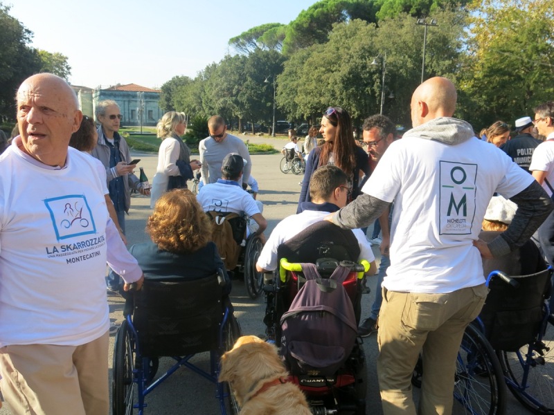 “La carrozzina è un ausilio, come un paio di occhiali. È un mezzo che serve per liberare le persone con difficoltà motorie”. Così va vista e cosi è secondo Enrico Ercolani, l’ideatore del movimento de La Skarrozzata, nato a Bologna nel 2011 per mirare alla sensibilizzazione e all'educazione alla diversità e alla disabilità. Nella mattina di domenica 21 ottobre 2018, sotto un sole splendente e con tanti partecipanti, si è svolta a Montecatini Terme la prima edizione della Skarrozzata, la passeggiata per provare la disabilità. In centinaia si sono radunati all’ingresso delle Terme Tettuccio, per poi percorrere insieme le vie della città, seduti sulle carrozzine messe a disposizione da Michelotti Ortopedia, e affrontare tutte le difficoltà legate alle barriere architettoniche. “Vogliamo diffondere a macchia d’olio l’evento in Italia e nel mondo – continua Ercolani - per migliorare le città e la mobilità di tutti, a partire dai più deboli. É importante che le persone provino la condizione dei disabili, per imparare e capire. Puoi raccontarlo finché vuoi, ma finché non ci si siede su una carrozzina e non si prova a girare in città non si possono capire le difficoltà reali”. Qual è il gap da colmare sul tema delle barriere? “Il primo gap da superare – sostiene Enrico - è quello sociale: il disabile non è uno sfigato, ma un cittadino attivo che può contribuire alla vita della società e al suo miglioramento”. Con Enrico, Tommaso Fanucci ha organizzato la Skarrozzata a Montecatini e ha gioito nel riscontrare tanta adesione: “Il primo traguardo – dice Tommaso – è la partecipazione e l’abbiamo raggiunto. Il secondo traguardo è migliorare la vita delle persone e allora io ringrazio tutti coloro che sono venuti a sostenere il nostro messaggio”. Circa mezzora di passeggiata nelle vie del centro e poi la tavola rotonda, nella sala Portoghesi delle Terme Tettuccio, dal titolo “Esperienze a confronto”, con interventi di rappresentanti delle istituzioni, sportivi, docenti ed esperti del settore. Tra questi Stefano Gori, atleta paralimpico che ha vinto ben 76 titoli nell’atletica leggera, tra velocità e salto in lungo. Presente alla Skarrozzata, evento inserito nel programma di Eticomobility 2018, manifestazione promossa dall'ACI Pistoia, anche Ennio Rucco, assessore Politiche sociali e giovanili del Comune di Montecatini Terme. Questo il suo pensiero:“Siamo assolutamente soddisfatti di questa bella giornata e del messaggio forte che lancia. Dobbiamo lavorare con costanza su questi progetti: per rendere migliore la vita delle persone non bastano iniziative isolate, servono un impegno continuativo e una cultura radicata, oltre che scelte politiche precise che finanzino i progetti necessari. Noi siamo impegnati su varie iniziative connesse al mondo della disabilità. Ad esempio, stanno nascendo a Montecatini reti di appartamenti su misura per disabili, perché possano trascorrere del tempo in luoghi adatti per loro. Sono politiche che vanno portate avanti con determinazione, fatte con costanza, per aiutare queste persone a essere ancora più felici di quanto sanno essere. Noi impariamo molto da loro, grazie alla loro forza e voglia di vivere”. Fanno da eco le parole di Helga Bracali, assessore alle Attività produttive del Comune di Montecatini Terme: “Questa prima volta della Skarrozzata a Montecatini è stata fortemente voluta da Tommaso Fanucci, ragazzo dalle mille risorse. È un evento importantissimo perché oltre a cercare di abbattere le barriere architettoniche, punta a superare anche quelle mentali, ed è la cosa più difficile”. Al via della Skarrozzata si è unita anche la camminata organizzata per sostenere la ricerca contro il cancro. Un tripudio di colori e intenti positivi ha quindi caratterizzato la giornata, conclusa con un simpatico pasta party offerto ai partecipanti.