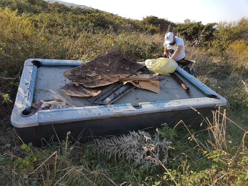 Gomme, bombole di gas, reti, e perfino un tavolo da biliardo, il “bottino” che è stato raccolto e smaltito liberando la nostra costa, e anche la parte alta della scogliera, da rifiuti più o meno ingombranti.