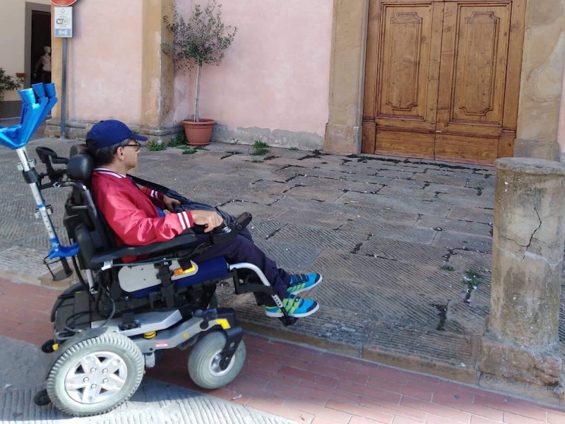 Ripercorriamo i passi della visita di Becattini, residente al Girone, comune di Fiesole, provincia di Firenze. Non potendosi muovere in auto, Marco ha dovuto utilizzare il treno per raggiungere Montaione, ma non è potuto scendere a Castelfiorentino a causa della mancanza dell’apposita passerella per il cambio di binario (solo il binario 1 è infatti accessibile per i disabili). Ciò lo ha obbligato a scendere a Empoli e a proseguire per Montaione in autobus per un totale di 3 ore e 40 minuti di viaggio: un’odissea. A quel punto è iniziato il sopralluogo vero e proprio sul territorio montaionese. L’accesso agli uffici del municipio è garantito e facilitato dal fatto che tutti gli uffici si trovano al piano terra del palazzo comunale. Lo stesso vale per la biblioteca e per le scuole, tutte dotate di servoscala. Tutto bene quindi? Non proprio tutto. Come hanno osservato Becattini, Padolfi e Rossi, infatti, nel centro storico i marciapiedi non sono dotati del percorso per i non vedenti e gli scivoli hanno il gradino troppo alto per essere superato in autonomia da persone che si muovono in sedia a rotelle. Anche lo stadio, appena fuori dal centro abitato, presenta delle limitazioni all’accesso in quanto per arrivare alle tribune ci sono solo delle scale e anche volendo risulta impossibile vedere la partita dal basso a meno che non si decida di entrare direttamente in campo.