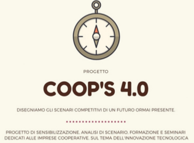 Coop's 4.0 è un progetto finanziato dalla Regione Toscana a valere sulle risorse F.S.E. 2016-2020 attraverso il "bando per la concessione di finanziamenti ex art. 17 comma 1 lett. a e comma 3 legge regionale n. 32/2002 per progetti formativi rivolti ad imprenditori su Industria 4.0, al fine di sostenere i percorsi di digitalizzazione delle imprese toscane, attraverso un intervento di formazione degli imprenditori gestito da Irecoop Toscana e promosso da Confcooperative Toscana.