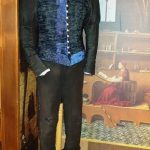 Farsetto in velluto di seta cangiante con bottoni metallo e pantaloni in fustagno.