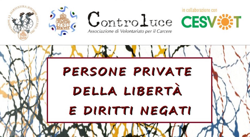 “Persone private della libertà e diritti negati”. È il titolo dell’evento promosso dall’associazione di volontariato penitenziario Controluce e dalle associazioni Allievi ed ex Allievi della Scuola Sant'Anna in collaborazione con il Cesvot e con altre realtà del territorio, che si terrà giovedì 25 ottobre, alle 21, nell'Aula Magna della Scuola Sant'Anna di Pisa, in Piazza Martiri della Libertà, 33.