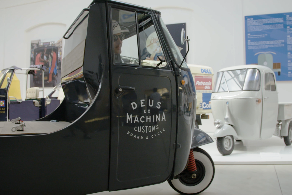 Rispettando le linee tradizionali delle tre ruote più amate al mondo, l’Ape Piaggio, e unendo lo stile inconfondibile Deus, è nato The Ganzo, una customizzazione che ha voluto esaltare la bellezza vintage e la funzionalità del mezzo, trasformandolo nel punto d’assistenza mobile dal fascino senza tempo.