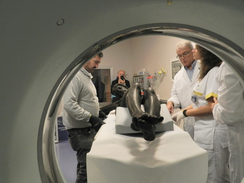Al momento del delicato smontaggio dal suo supporto ligneo, durato oltre tre ore, il Cristo fu anche sottoposto ad esame radiologico (Tac) per verificarne lo stato di conservazione, e non lasciare quindi nulla al caso, riguardo l’eventuale fragilità di un’opera di così alto valore artistico e culturale, che tuttavia aveva necessità di essere maneggiata a lungo.