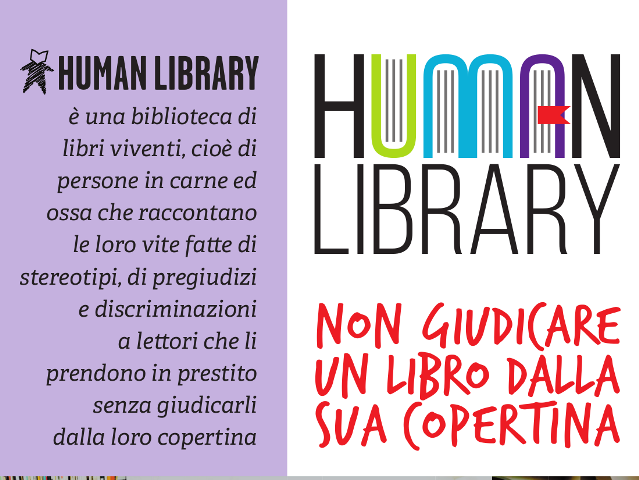 Tornerà venerdì 26 ottobre alle 21,00, presso la Biblioteca “P. Neruda” di Limite sull’Arno (sede comunale, piazza VIII marzo 1944), la serata “Human Library-non giudicare un libro dalla sua copertina”, nell'ambito dell'omonimo progetto che prevede una serie di incontri in tutta la Toscana in cui “persone in carne e ossa raccontano le loro vite fatte di stereotipi, di pregiudizi e discriminazioni a lettori che li prendono in prestito senza giudicarli dalla loro copertina”. Non vi saranno quindi libri in carta da sfogliare e conoscere, bensì uomini e donne che interagiscono con gli altri e raccontano se stessi e il proprio vissuto, mettendosi a disposizione per domande, approfondimenti, spiegazioni, con la volontà di diffondere l'idea che le persone, così come i libri, si giudicano solo dopo aver fatto conoscenza e non dalla semplice copertina.