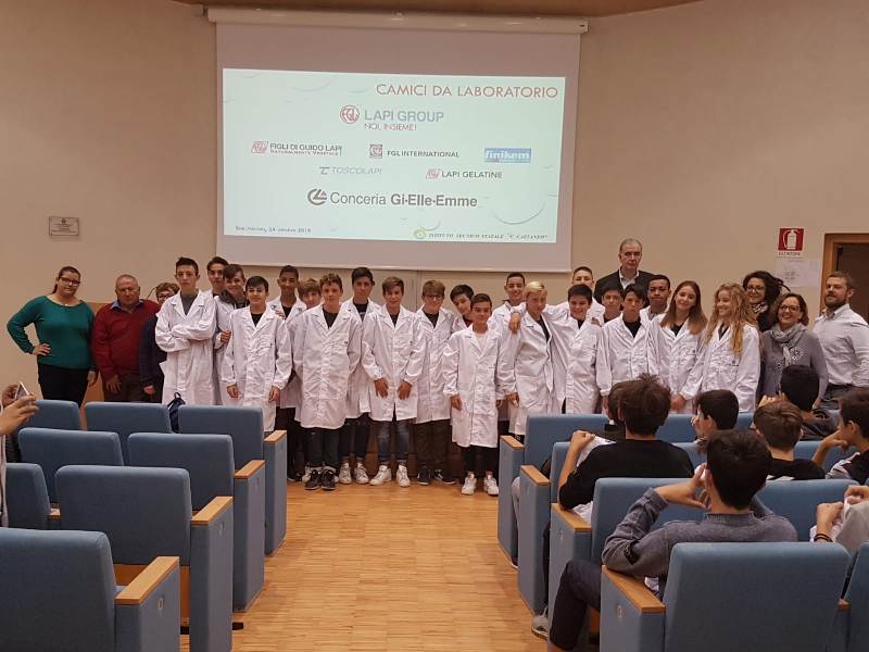 Anche quest’anno gli studenti delle prime classi dell’indirizzo chimico dell’Istituto Cattaneo hanno ricevuto in regalo il loro camice da laboratorio. A renderlo possibile Conceria GI-Elle-Emme SpA, sponsor dell’iniziativa.