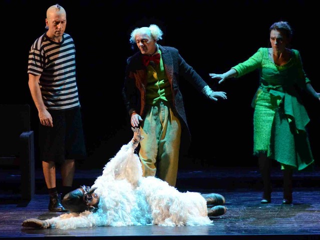 Siamo alla caduta di Mussolini: una famiglia fumettistica (padre, madre, figlio e servetta) è al centro di uno spettacolo che è quasi un musical, quasi un dramma borghese, quasi una commedia, quasi una tragedia e quasi tutte queste cose messe insieme. Non si tratta di approssimazione quanto di indeterminatezza, la stessa dell’Italia di quegli anni.