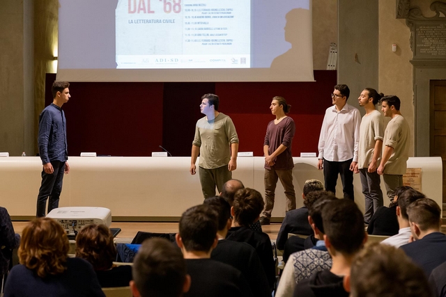 Stile, scrittura e poesia dell’artista bolognese Pier Paolo Pasolini non smettono di essere calamita per il pubblico. E la conferma è arrivata questa mattina, Venerdì 26 Ottobre 2018, in concomitanza con la Giornata Nazionale della Letteratura durante la quale, otto alunni del Laboratorio Teatrale dell’I.I.S. “Ferraris-Brunelleschi” di Empoli, Alessio Antonini, Samuele Bitossi, Sofia Cappelli, Lorenzo Cavallaro, Marcello Garinei, Dario Lassi, Sara Migliori e Matteo Pistolesi, seguiti dalla regista M. Simona Peruzzi e dalle docenti Silvia Desideri, Laura Moroni, Teresa Zuffanelli, hanno messo in scena la performance “...come nell'aurora di una nuova preistoria. Studi sul Pilade e altri estratti pasoliniani” presso l’Auditorium Sant’Apollonia di Firenze. In tale occasione, gli alunni-attori hanno dato la possibilità ad un flusso di docenti dell’Università di Firenze, studenti e insegnanti delle scuole secondarie di secondo grado del nostro territorio di confrontarsi con il poeta bolognese.