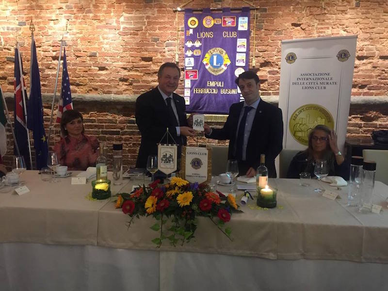 Dopo quindici anni dalla sua nascita, il Lions Club Empoli Ferruccio Busoni entra a far parte dell’Associazione Internazionale Città Murate Lions Club. La cerimonia è avvenuta durante il meeting del mese di ottobre, alla presenza del Presidente dell’Associazione stessa Lion Giuseppe Guerra, che ha tenuto una relazione sul tema : ”Presentazione dell’Associazione Internazionale Città Murate Lions Club; storia, scopi ed attività”. L’Associazione Internazionale sopra menzionata nasce nel 2003 grazie al Lions Club Lucca le Mura. Essa raggruppa i Clubs che vivono e lavorano in città ancora circondate da antiche mura, oppure con resti parziali, allo scopo di promuovere la conoscenza reciproca, di studiarne la storia, e di proporre insieme, soluzioni ai problemi che la cinta muraria comporta , sia in fatto di vivibilità, che di viabilità, oltrechè di manutenzione e illuminazione. Non molti empolesi sanno che, nella nostra cittadina, esistono, tra quelle visibili dalla strada e quelle inglobate negli edifici, antiche mura nella misura del 75 % di quelle originarie.