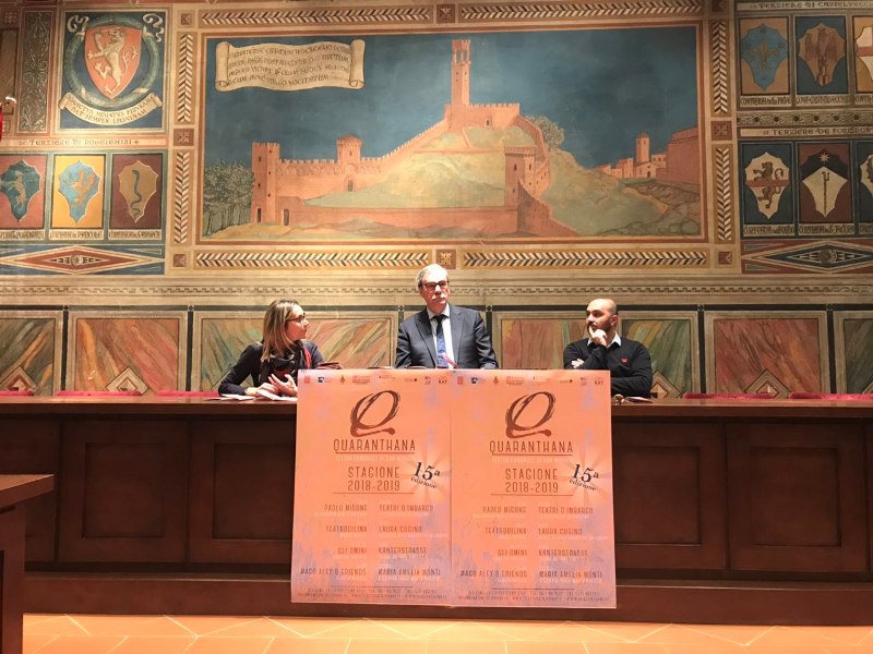 Venerdì 2 novembre al via la quindicesima stagione del Quaranthana, teatro comunale di San Miniato gestito dalla compagnia Teatrino dei Fondi. Un cartellone composto da 8 spettacoli di prosa, 4 concerti, 5 spettacoli in domenicale per le famiglie e 22 spettacoli per le scuole. Un calendario ricco di grandi nomi del teatro e cabaret italiano, un’offerta culturale di grande pregio che farà emozionare e riflettere, presentato alla presenza del sindaco di San Miniato Vittorio Gabbanini, dell’assessore alla cultura Chiara Rossi e del direttore artistico Enrico Falaschi.