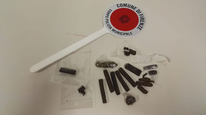 Ma non è finita qui. Gli agenti che sono rimasti alle Cascine hanno effettuato un controllo nella zona con l’ausilio di Piper, il cane antidroga in forze alla Polizia Municipale, affiancata da un secondo cane in addestramento. E proprio vicino alla fermata della tramvia entrambi gli animali hanno fiutato droga ben nascosta sotto le foglie. Sono stati rinvenuti poco più di 61 grammi di hashish e oltre 4,1 di marijuana. Le sostanze sono state sequestrate.