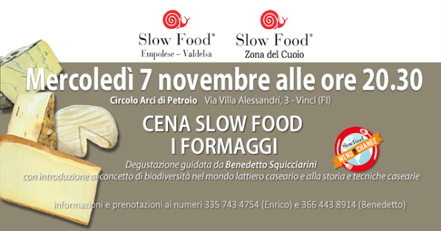 Le Condotte Slow Food Empolese Valdelsa e Zona del Cuoio propongono una serata dedicata alla conoscenza dei FORMAGGI: introduzione al concetto di biodiversità nel mondo lattiero caseario, storia e tecniche casearie.