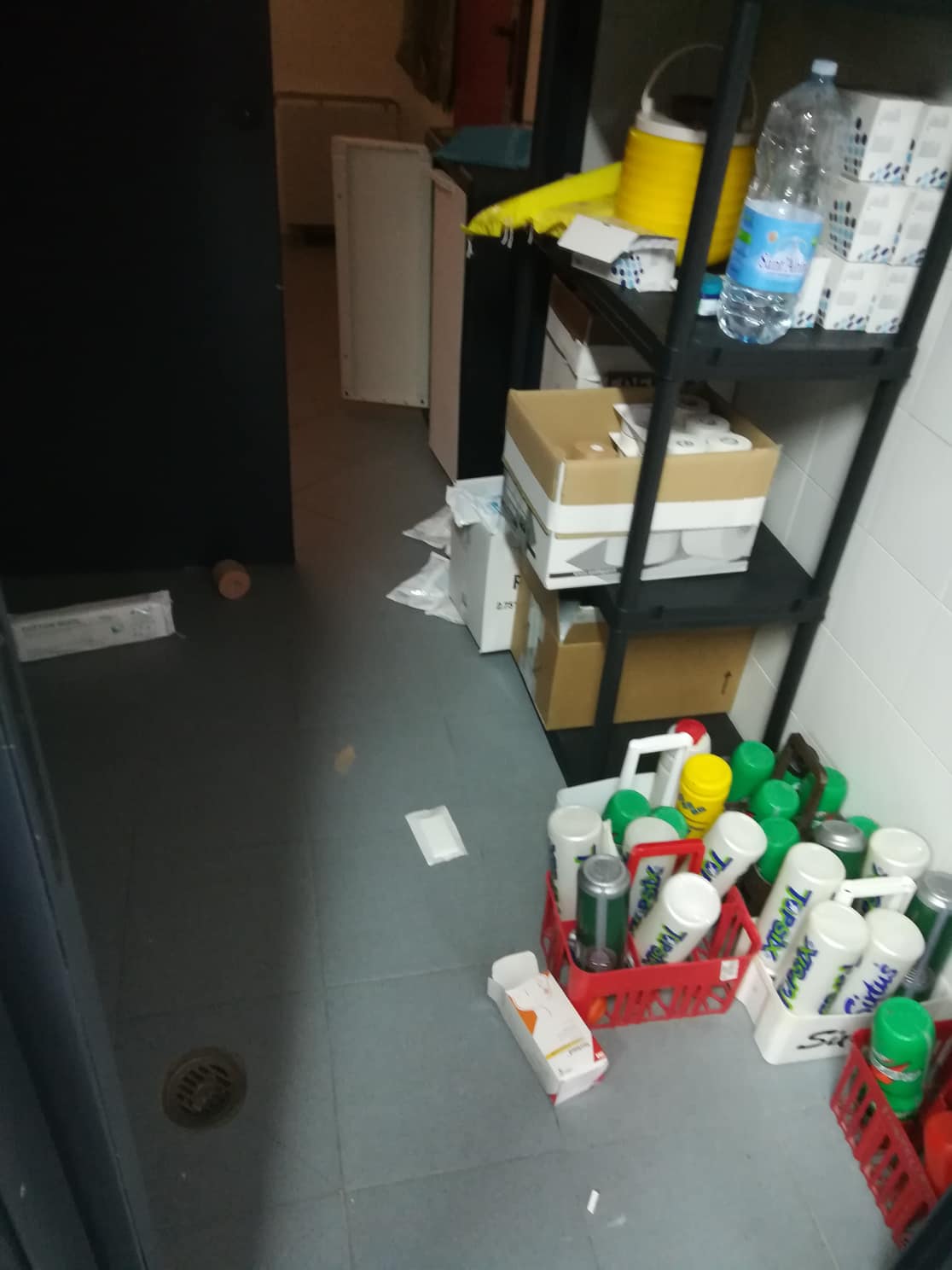 I responsabili sono entrati questa notte hanno rotto la porta del bar per rubare qualche bibita e poi sono entrati nell’infermeria magazzino portando via qualche bottiglia di olio canforato.
