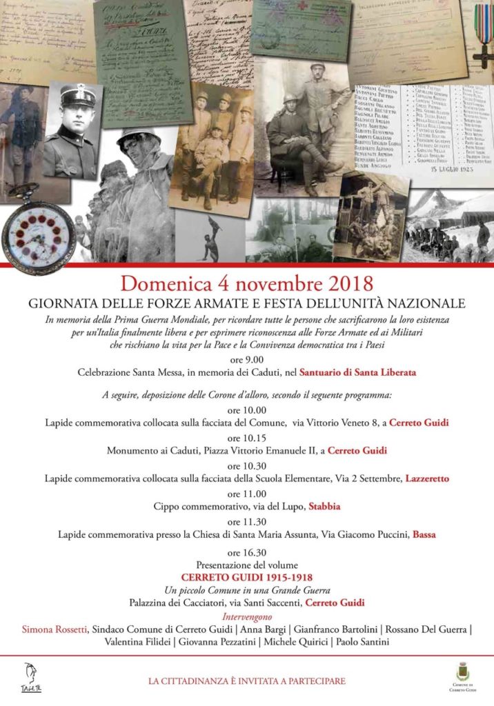 “Sono tanti quelli che persero la vita a Cerreto Guidi- commenta il sindaco Simona Rossetti- ed è importante ricordarli in maniera non formale con l’obiettivo di coinvolgere la comunità nel ricordo e nella testimonianza. Quest’anno- continua il sindaco- verrà inoltre presentato in occasione del 4 novembre un libro sulla prima guerra mondiale vista e vissuta dai cerretesi, chiudendo così un importante e prezioso lavoro iniziato tre anni fa con la raccolta di materiale documentario”.