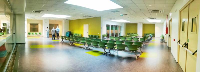 La nuova sala di attesa di Endocrinologia risponde alle esigenze di maggiore tutela della privacy e di comfort per un’utenza quotidiana di diverse centinaia di pazienti provenienti da tutta Italia che, oggi, grazie alla semplificazione dei percorsi assistenziali anche con l’ausilio di una segnaletica direzionale impostata sui colori, possono accedere alle varie prestazioni sanitarie attraverso un numero di chiamata ed essere introdotti non più allo sportello ma in ambienti separati e confortevoli, per completare i necessari adempimenti relativi all’accettazione.
