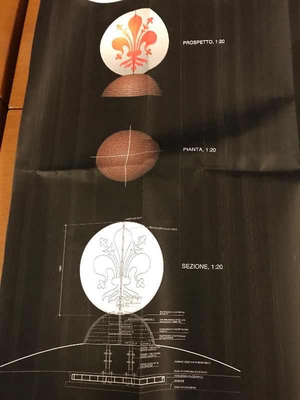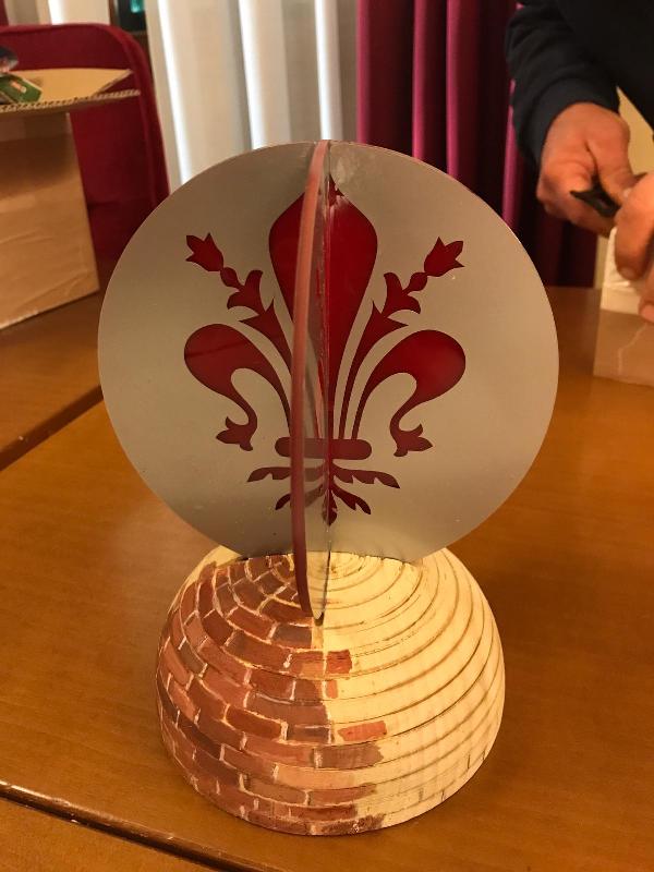 Il manufatto proposto, un Giglio inserito in 4 lastre di acciaio circolari che ne preservano inalterata la visione prospettica, ha convinto pienamente la Commissione giudicatrice, che ha apprezzato anche il richiamo all’identità territoriale ben presente in tutti i suoi elementi costitutivi: la base in cotto, che si ricollega all’attività delle fornaci (in passato vero e proprio cardine del tessuto economico e produttivo di Castelfiorentino), l’acciaio che richiama la storia del “Ferruzzino” (un’industria di reti metalliche e profilati in acciaio), e infine il vetro, legato a doppio filo alla presenza della vetreria e a una tradizione di lavoro femminile un tempo molto diffusa, come le fiascaie.
