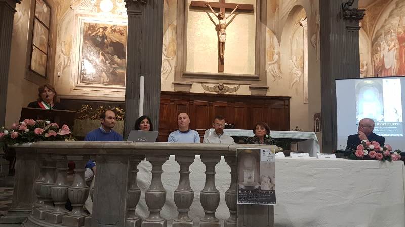 Venerdì 26 Ottobre scorso nella Pieve Collegiata di San Giovanni Evangelista si è svolta la cerimonia di presentazione alla collettività dei restauri condotti sull’opera, resi possibili grazie al munifico contributo di una famiglia santamariammontese. Di fronte ad un buon numero di persone, la serata è stata un’occasione preziosa non solo per parlare di questa piccola “perla” artistica, ma anche per accendere i riflettori sulla bellezza.