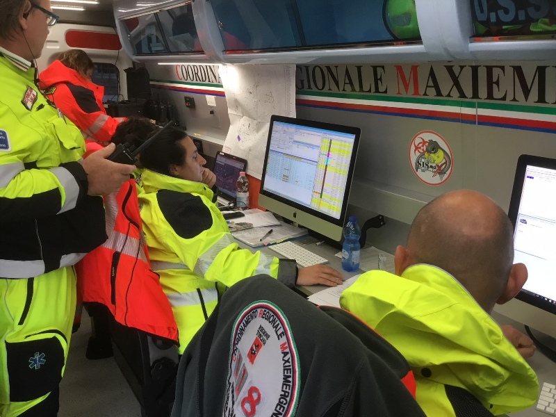 “Si tratta – spiega il direttore della Centrale Operativa 118 “Alta Toscana” Andrea Nicolini - - di una vera e propria Centrale 118 mobile, con le stesse prerogative di quella principale, visto che è dotata di un sofisticato sistema che permette un tempestivo intervento di assistenza ovunque venga richiesto. Nel mezzo tutti i monitor sono collegati con il database 'Alta Toscana' ed al suo interno ci sono sempre, proprio come se fossero in Centrale, un nostro infermiere ed un nostro operatore tecnico, insieme ad un infermiere e ad un operatore tecnico della Funzione 2 Sanità della Regione Toscana”.